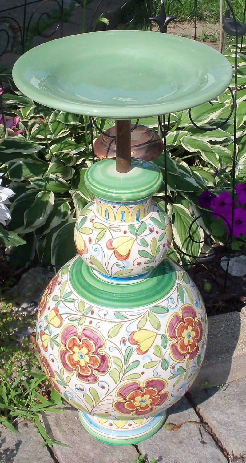 Colorful Flower Medly Bird Bath. 25 Inches Tall By 11 Inches Wide.