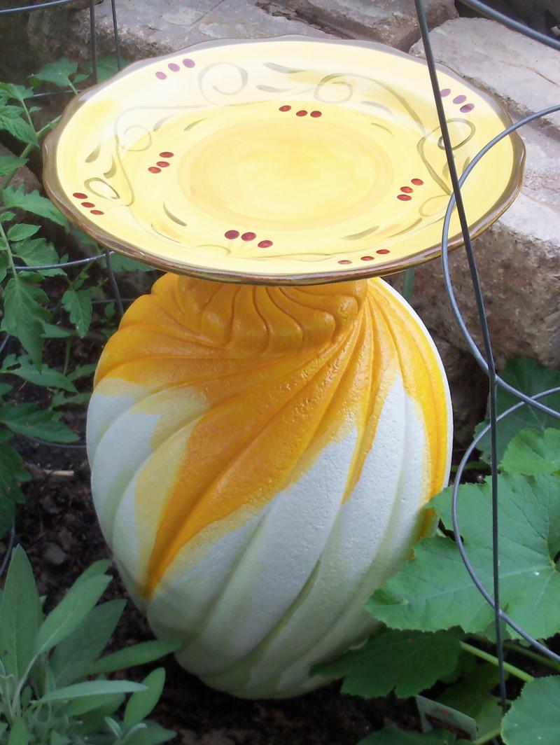 This Bird Bath is Designed to Look Like A Large Squash or Zucchini Flower. 18 Inches Tall By 11 Inches Wide.