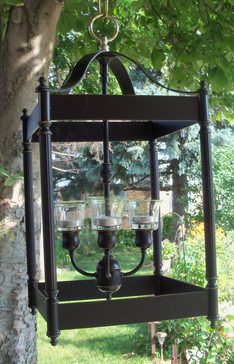 Large Black Cnadle Lantern. Holds Four Candles. 20 Inches Tall By 10 Inches Wide