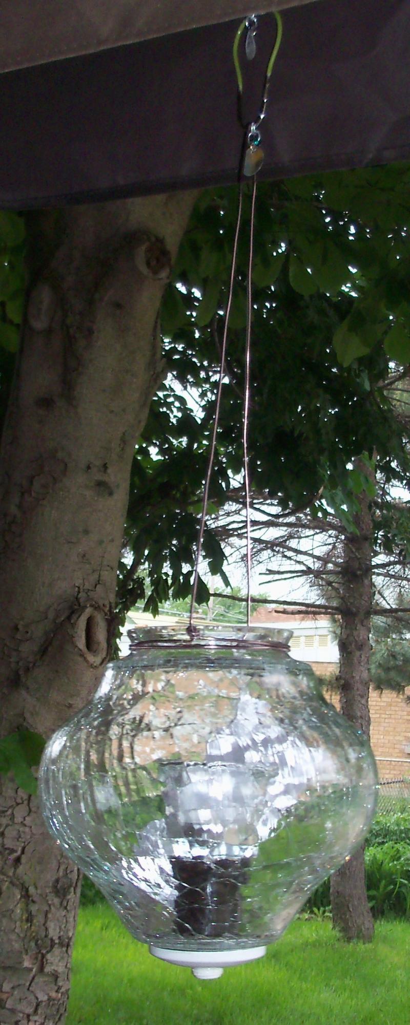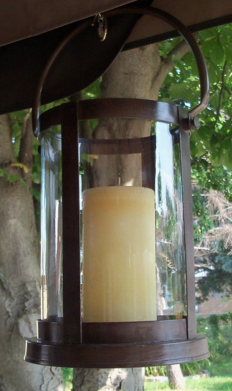 Hanging Candle Lantern With Crackle Finish. Glass Portion is About 7 Inches High By 7 Inches Wide. Total Height Is About 18 Inches. Item Comes With A Locking Hook For Easy Attachment to A Gazebo Rod.